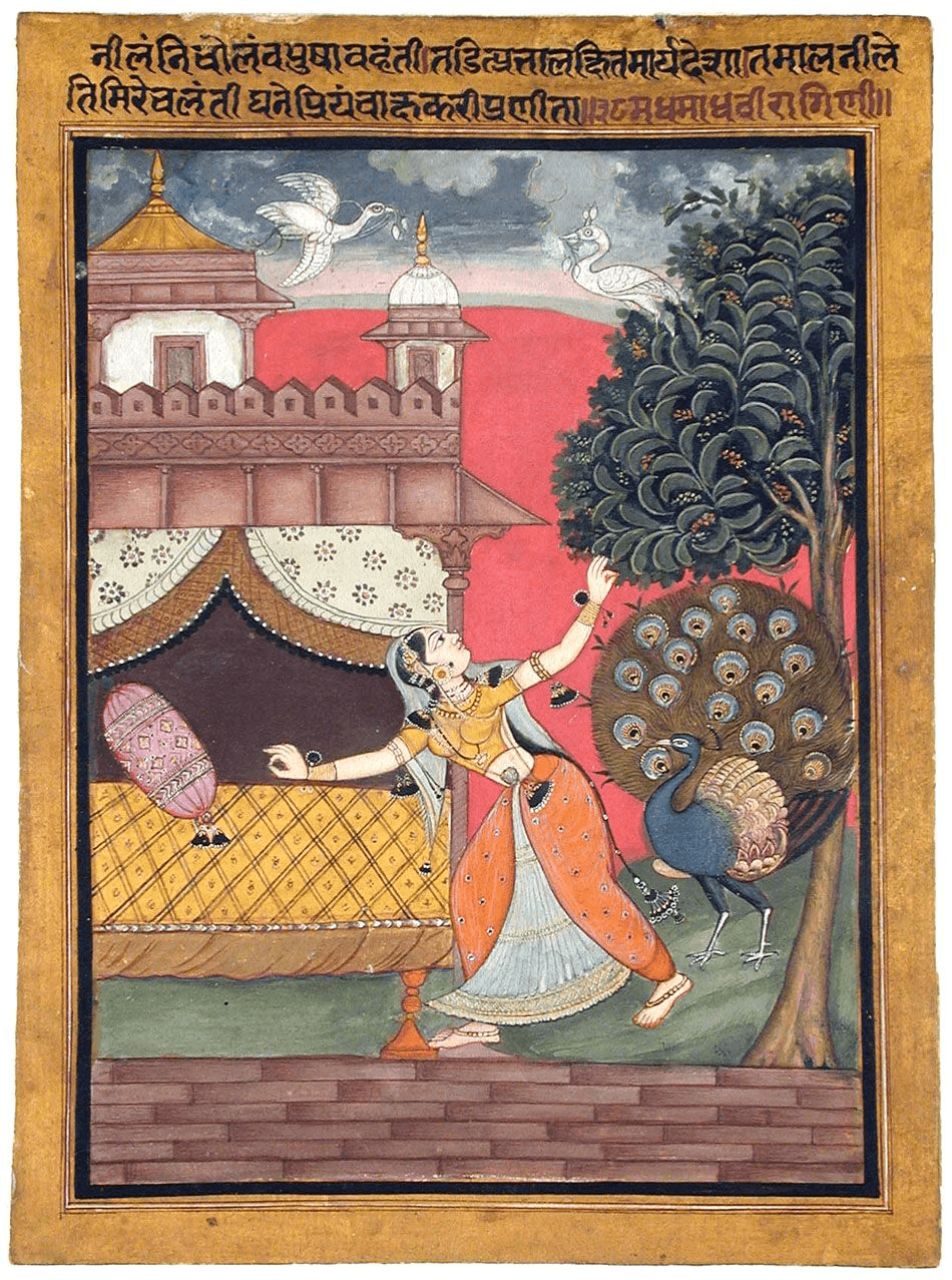 Ragini Madhu Madhavi embodies tender separation love aching in spring’s bloom. Amid jasmine and moonlight, she waits, her melody echoing longing and beauty. Animation awakens her world—peacocks cry, clouds gather, lightning glows, and sitar notes weave her raga.